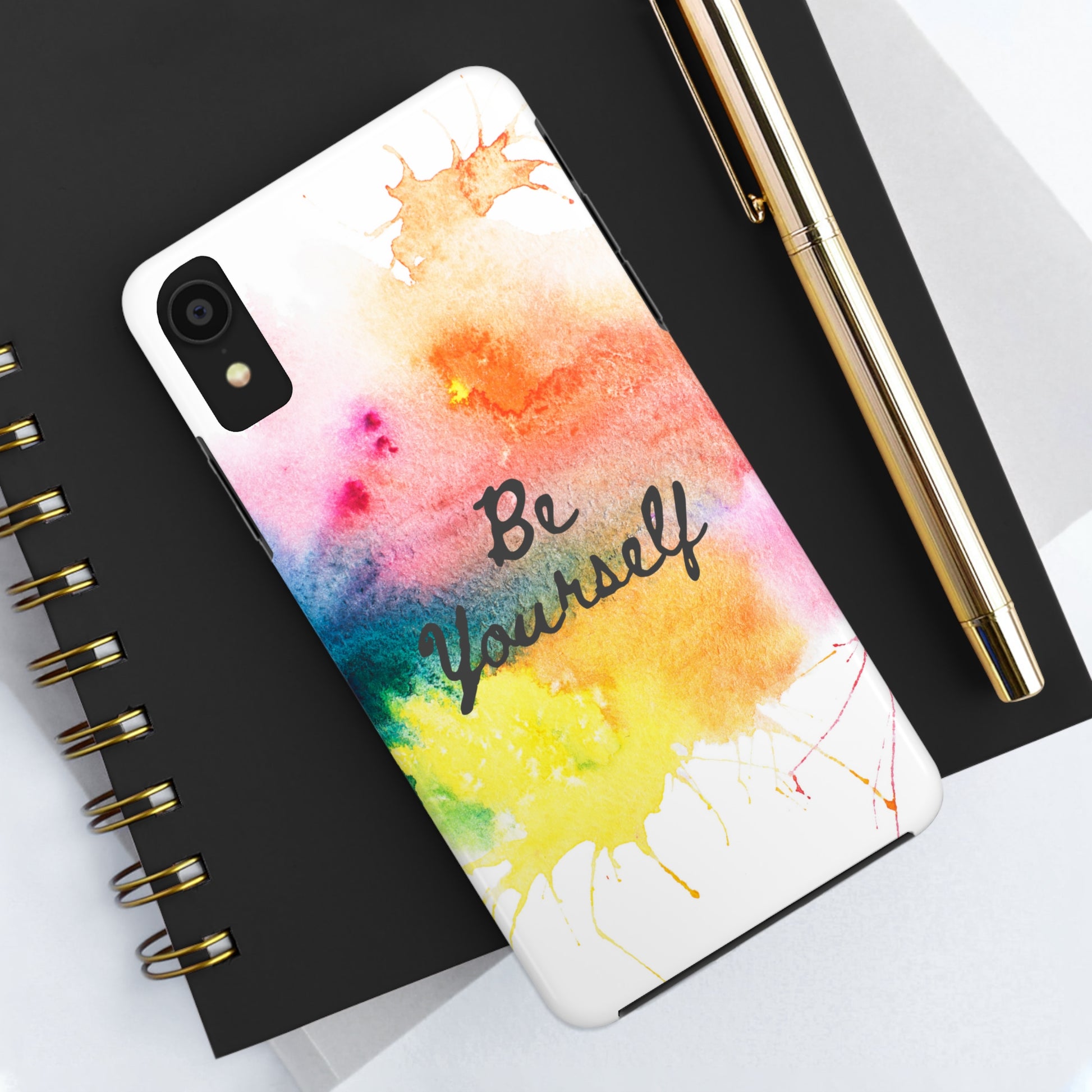 Show off your unique style with this one-of-a-kind Be Yourself phone case! Crafted with a vibrant watercolor painting and an inspiring message, this eye-catching phone case stands out from the crowd and screams "be yourself!" (In a fun, cheerful way, of course!)